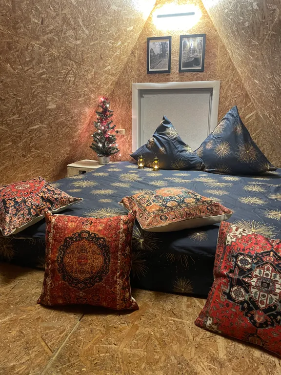 2 спальных места (1 диван на первом этаже + 1 большой супер удобный, ортопедический матрас на втором этаже),