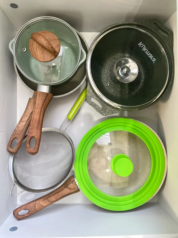 Для ваших питомцев есть чистые миски, тряпки и тазик для мытья лап и пенка для лап.