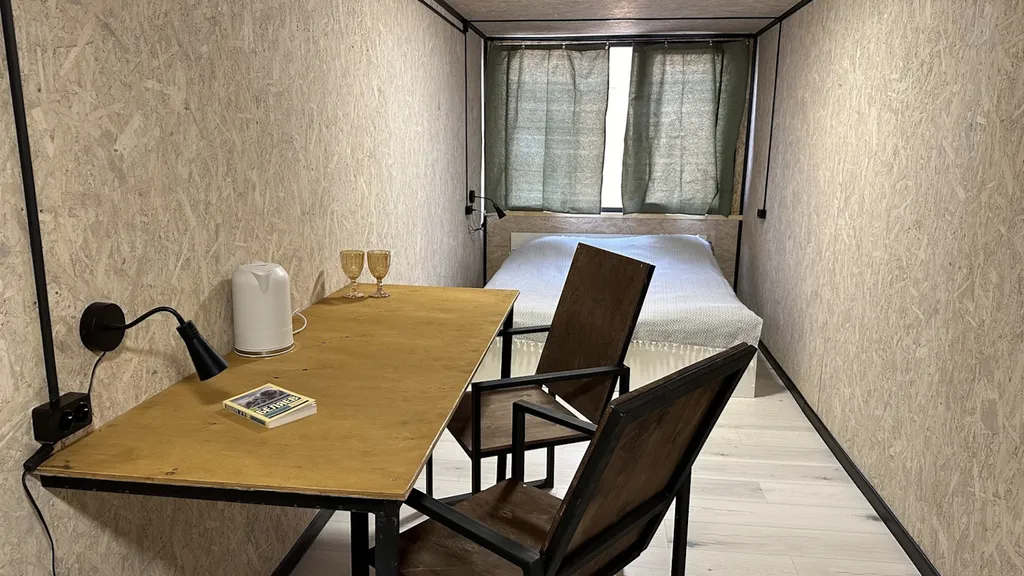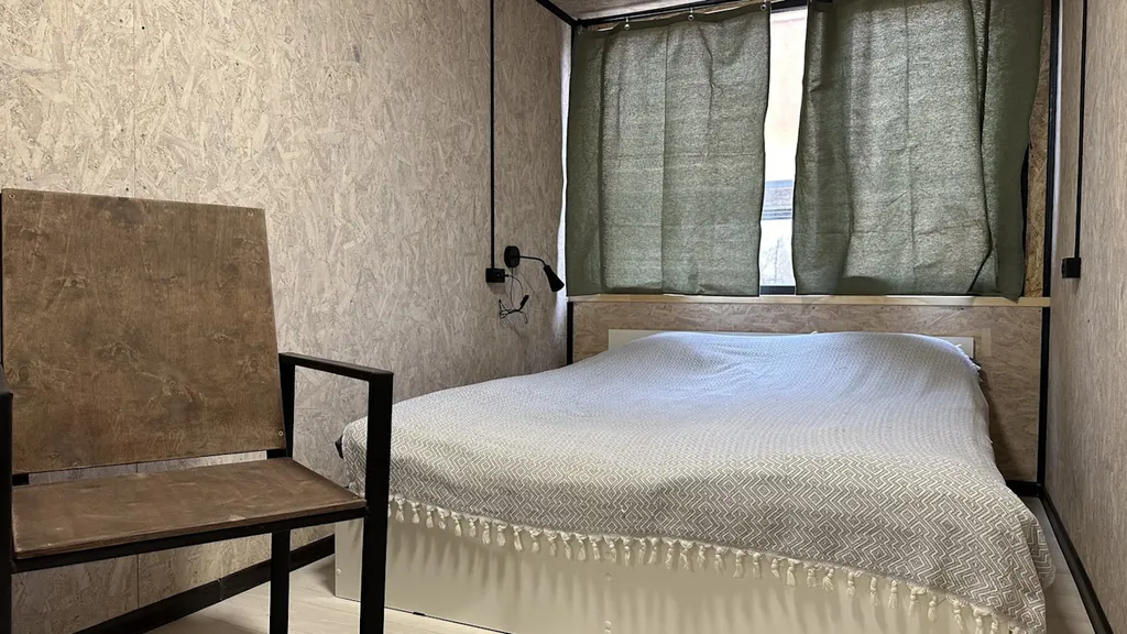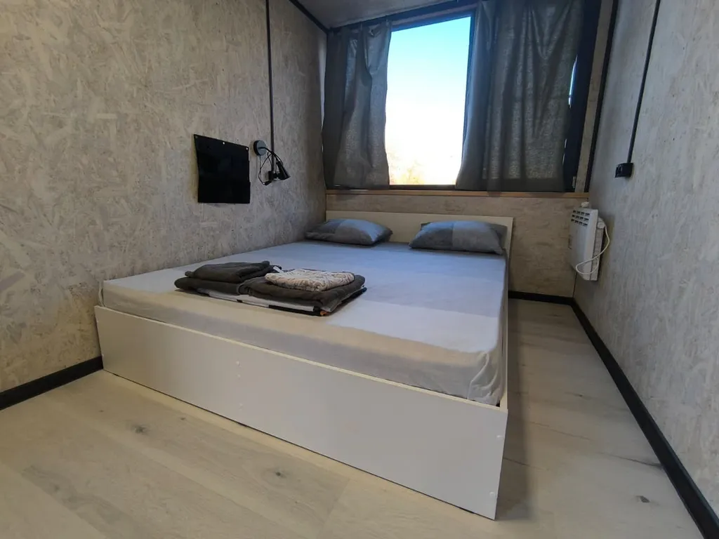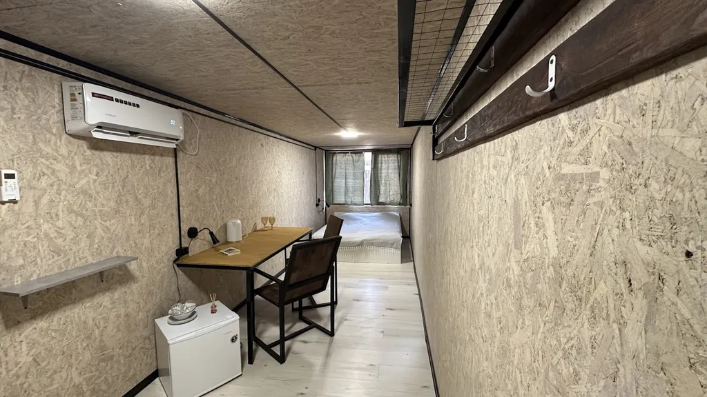 Наполнение: одна двуспальная кровать, стол для комфортной работы за компьютером / приема пищи, постельные принадлежности, полотенце, отдельная ванная комната, холодильник, кондиционер, чайник.
