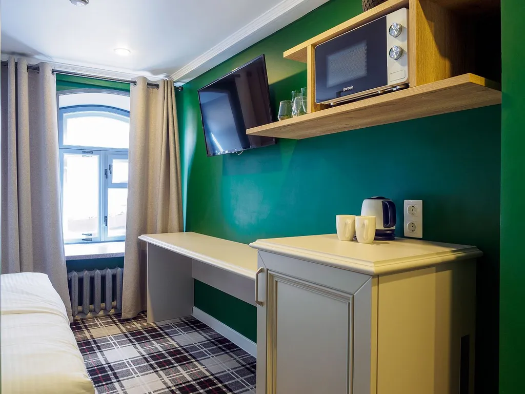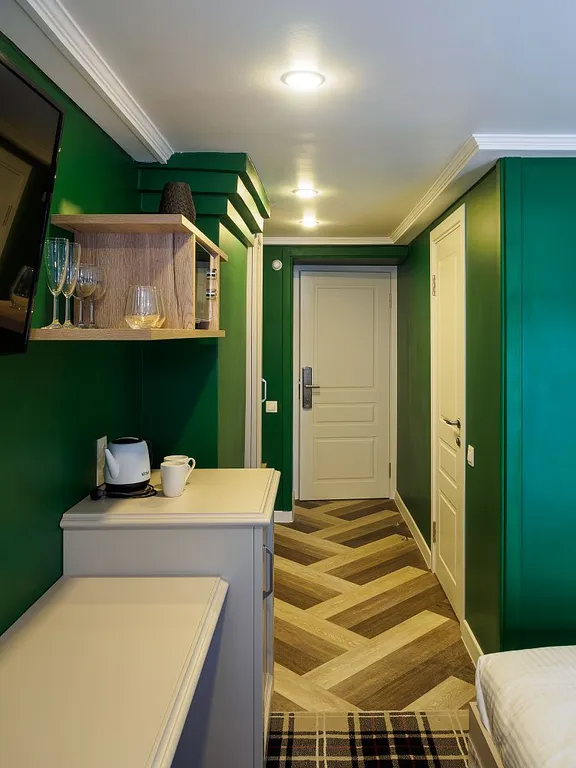 Двуспальная кровать — ортопедический матрас, сатиновое бельё, Wi-Fi интернет. Телевизор с плоским экраном, кабельные каналы, кондиционер. Санузел: душ, полотенца, туалетные принадлежности, фен. Холодильник, чайник, микроволновая печь.