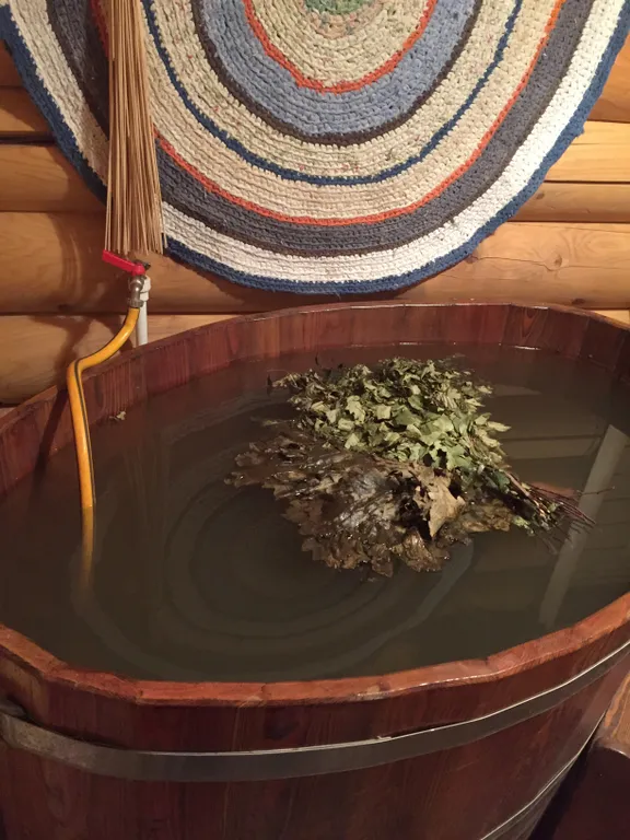 Баня с дубовыми вениками, мёдом и ароматным чаем.